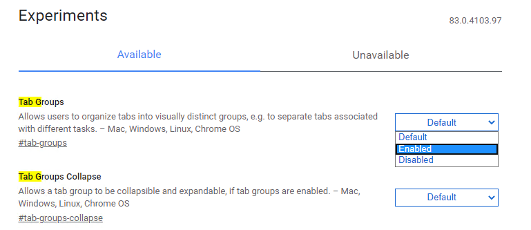 chrome: // flags / # tab-groups