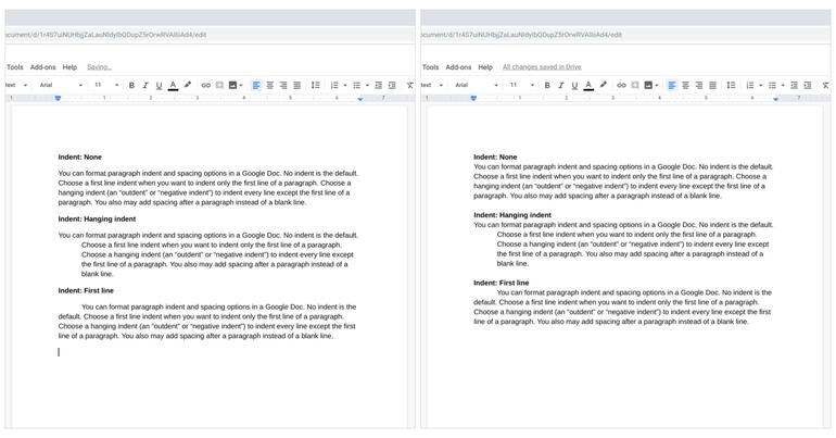 Google Docs le brinda herramientas para formatear párrafos con sangría francesa correctamente, sin el uso de la tecla Tab. Por ejemplo, una forma ineficaz de crear una sangría francesa sería escribir la primera línea de un párrafo y luego tocar la tecla Tab a medida que ingresa cada línea adicional en el párrafo. Incluso una pequeña edición de su texto podría requerir que vuelva a alinear cada línea.