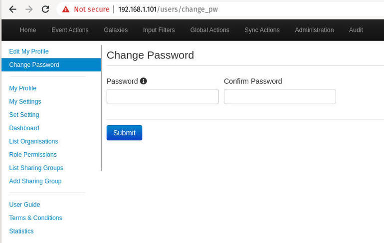 Cambiar la contraseña predeterminada de MISP.