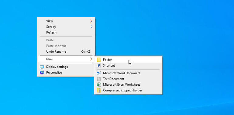 A continuación, haga clic derecho en cualquier área vacía del escritorio. En el menú emergente, vaya a Nuevo y seleccione el comando Carpeta (Figura A).