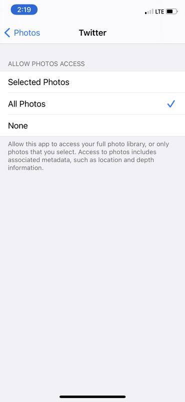 Siempre que realice este cambio y vuelva a abrir la aplicación, los cambios seleccionados entrarán en vigor. Si elige Fotos seleccionadas, tendrá la opción de editar la lista de fotos seleccionadas y elegir nuevas fotos que la aplicación pueda ver, o eliminar el acceso a todas las fotos seleccionadas.