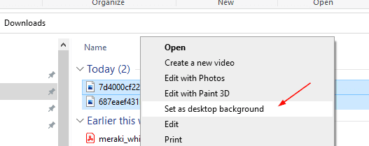 Fácil, resalte las imágenes que desea establecer como fondo de pantalla, haga clic con el botón derecho en cualquiera de ellas y elija Establecer como fondo de pantalla.