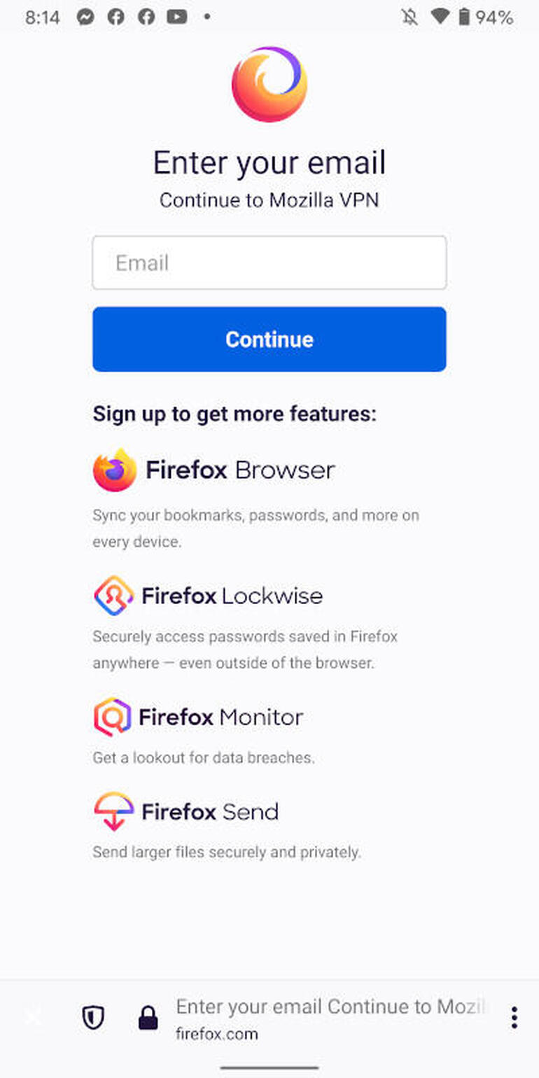 Haré una demostración en Android 11, pero el uso es el mismo, independientemente de si estás en la plataforma móvil de Google o en la de Apple. También necesitarás un Cuenta VPN de Mozilla. Desafortunadamente, no tienen una prueba gratuita para el servicio, por lo que tendrás que gastar al menos la moneda durante un mes. Si no te gusta el servicio, siempre puedes cancelar y solo te quedas con el costo de un café con leche o un libro electrónico de Amazon.