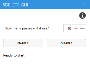 Para comenzar, descargue el archivo SDelete-Gui.exe de la página de código abierto y ejecútelo. La ventana de configuración se abre después de pasar el indicador de UAC.