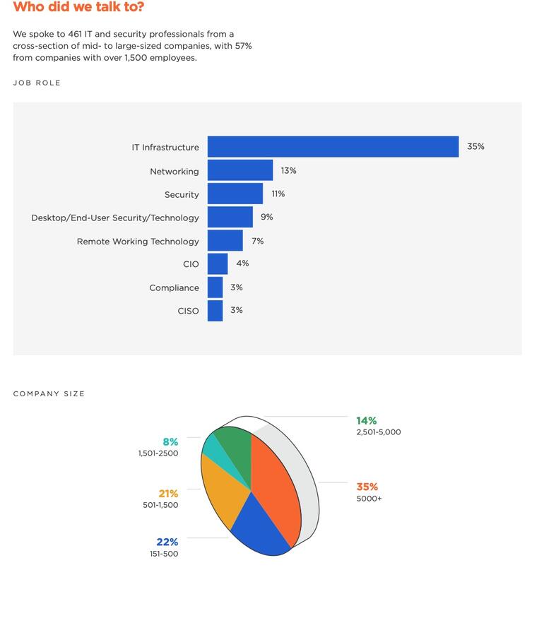 Illumio colaboró con Virtual Intelligence Briefing y encuestó a 461 profesionales de TI y seguridad de una muestra representativa de empresas medianas y grandes, con un 57% de empresas con más de 1.500 empleados.