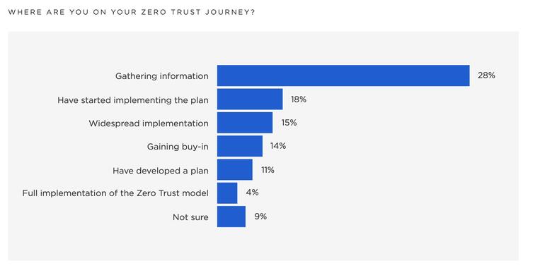 Como es el caso de muchas iniciativas de seguridad, la implementación de ZT es “más fácil de decir que de hacer”, lamentó el informe, ya que muchos de los encuestados todavía estaban en la fase de planificación.